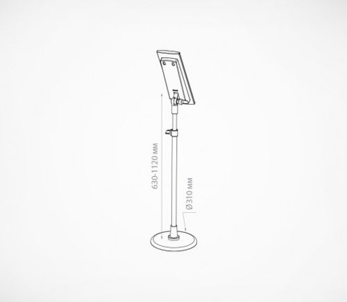 Основание для напольной информационной стойки на 10 рамок DATAFRAME формата А-4. Регулируемый угол наклона держателя рамок. Диапазон в котором изменяется высота изделия: от 950мм (в крайнем нижнем положении) до 1450 (в верхнем)
