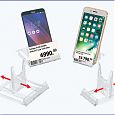 Универсальная сборная подставка под товар идеальна для смартфонов, планшетов, электронных и печатных книг, тарелок и блюд. Применяется в салонах сотовой связи, магазинах электроники и книжных магазинах. Регулируется под разную толщину товара. На переднем крае подставки находится встроенный ценникодержатель. Поставляется в разобранном виде, легко собирается