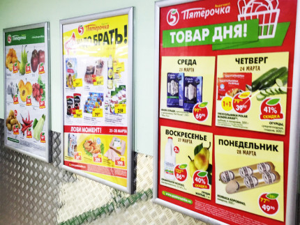 Рамы из алюминиевого KLIK профиля одно из популярных средств размещения рекламной и любой другой информации. Применяются там, где необходимо часто менять информационные плакаты: в офисах, банках и страховых компаниях. Широкое распространение они получили и в современных супермаркетах и гипермаркетах, где чаще всего используются для рекламы товаров, специальных предложений и акций. Хороший внешний вид и простота использования, делает эту категорию товаров незаменимым рекламным носителем.
