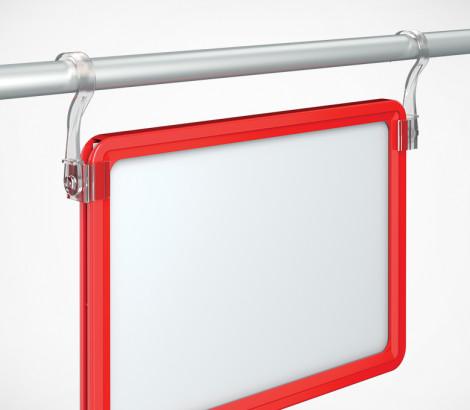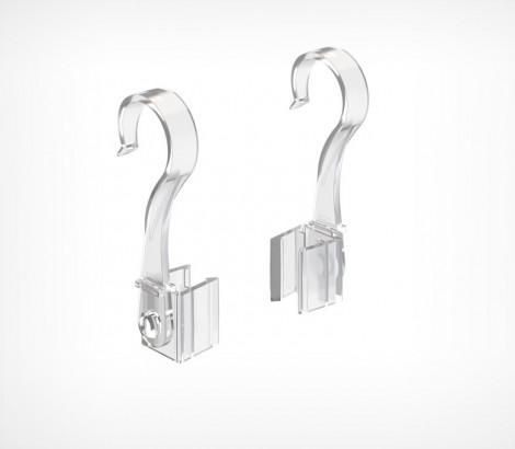 Крючок с подвижным основанием для подвешивания пластиковых рам на трубу до Ø 20 мм. Также позволяет подвесить рамку на металлические покупательские корзины и подвесные профили. Закрепляется с боковой стороны рамки. Для подвешивания одной рамки необходимо два крючка разной ориентации (левый и правый).