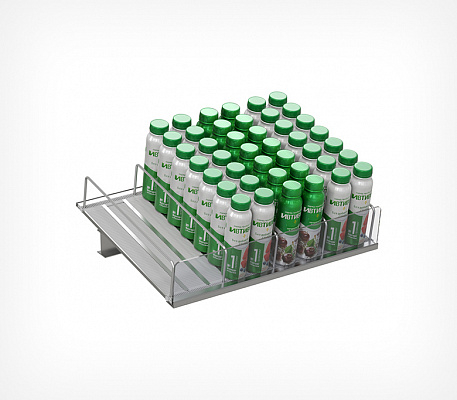 Применяется в случае необходимости создания угла наклона горизонтальной полки стеллажа. Устанавливается под роллерное полотно с задней стороны роллерной полки.