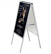 Двухсторонний раскладной штендер с алюминиевыми клик рамами. Раскладная рекламная конструкция легкая в использовании, легко устанавливается, привлекает внимание посетителей.
